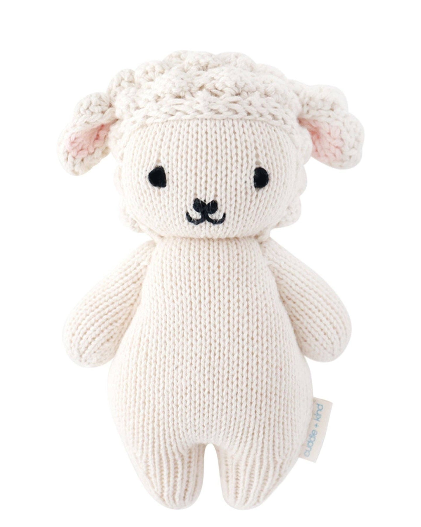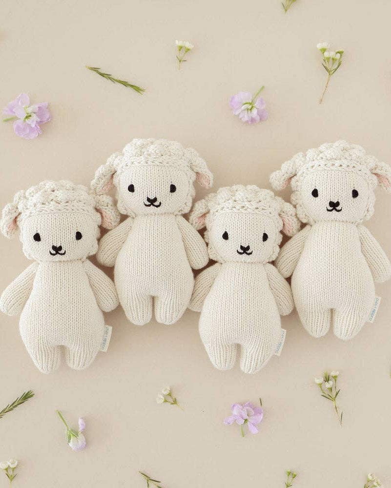 Baby Lamb is a charming 7” hand-knit toy made from 100% natural cotton yarn, perfect for little hands. Each purchase provides 5 meals to children in need and supports fair-trade artisans. This soft, durable doll makes a thoughtful gift for babies and is ideal for birthdays, baby showers, or nursery decor.