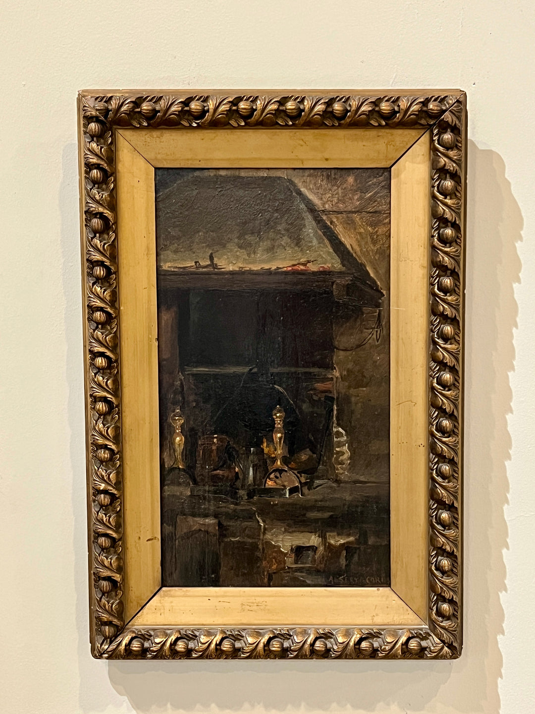 18th-Century Italian Oil Painting – Hearth Scene from Marche