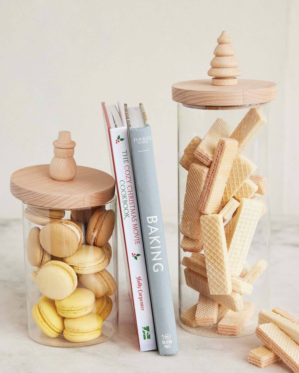 4" Round x 12"H Glass Canister with Wood Lid & Christmas Tree Knob